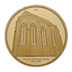 Seit 2003 sind diese „Goldstücke“ bereits zum Sammelobjekt und wertvollem Geschenk geworden, weil sie nur in einer geringen Auflage von jeweils 250 Stück geprägt wurden und auf der Rückseite jährlich ein neues Motiv aus unserer Heimatstadt bringen. Auch hier fließt der Betrag von 50,– Euro pro Stück direkt und ohne jeden Abzug dem bekannt guten Zweck zu. Hier zu sehen sind alle vorhandenden Motive.